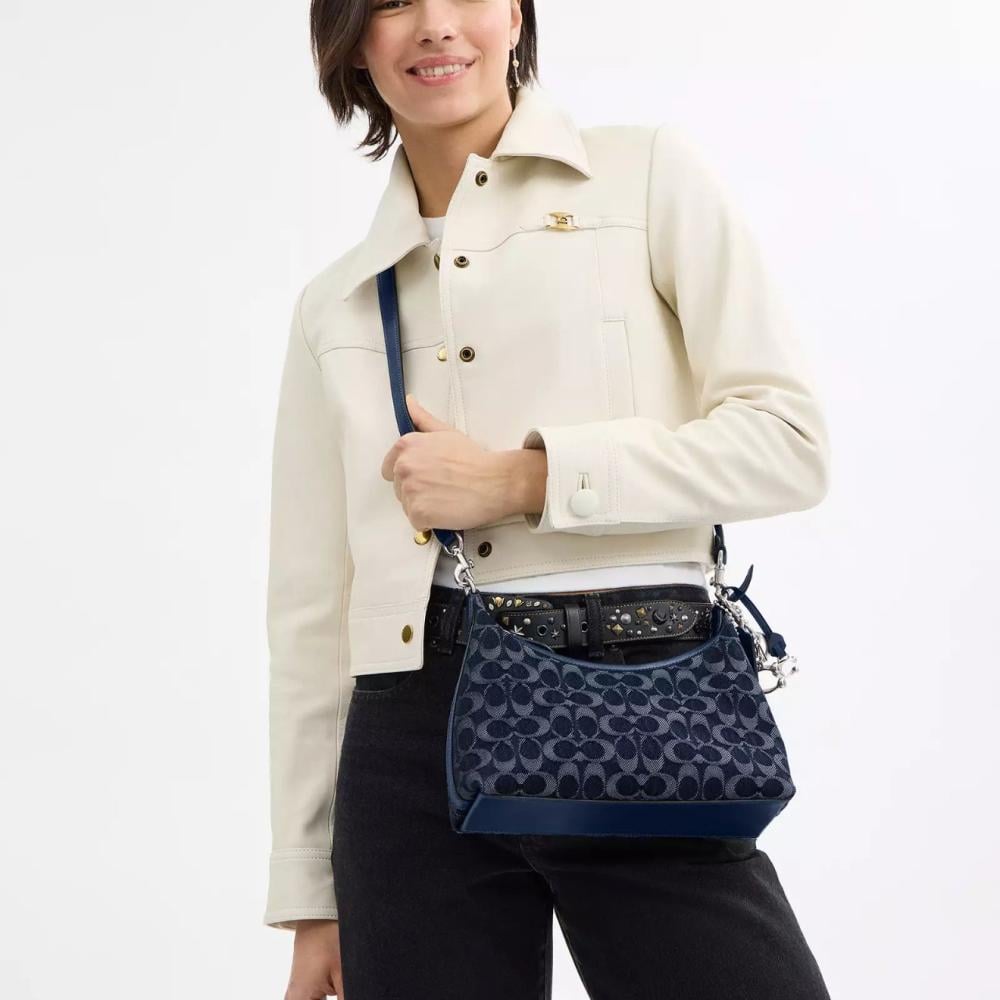 SMALL ROMY T MONOGRAM SHOULDER BAG