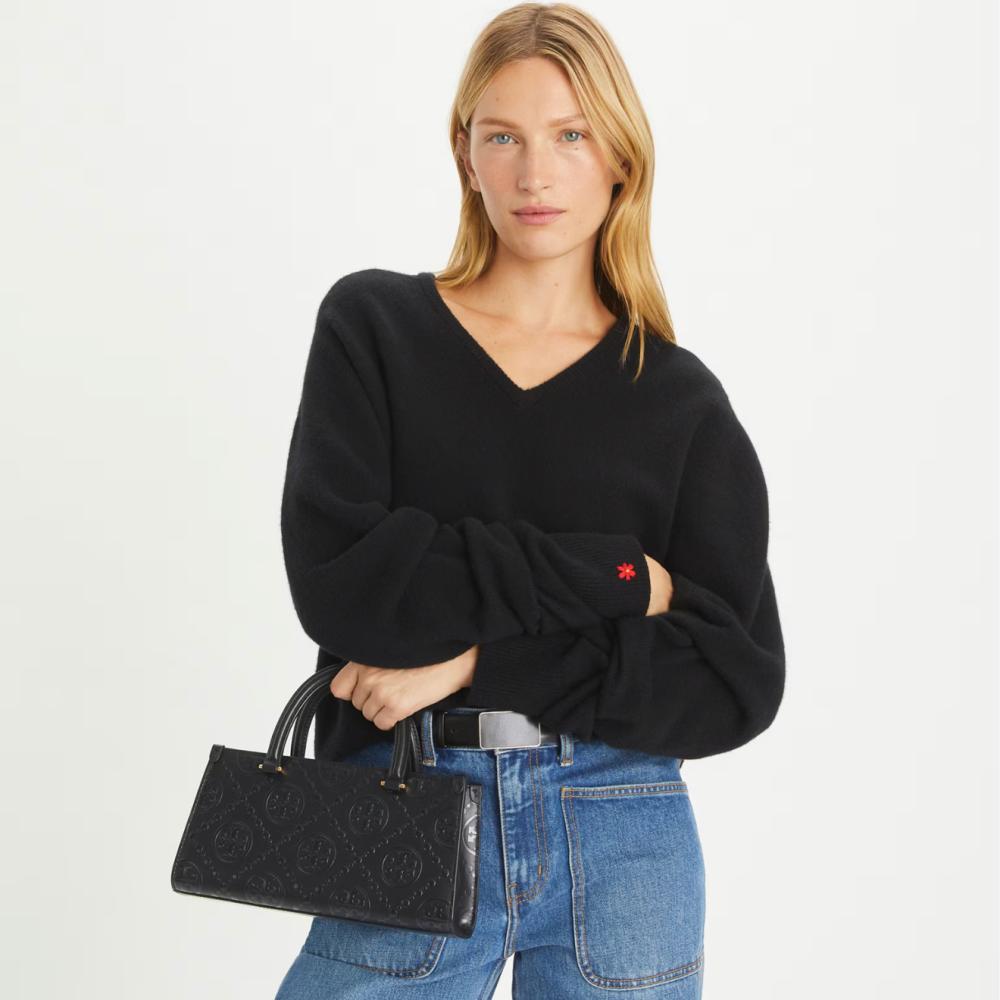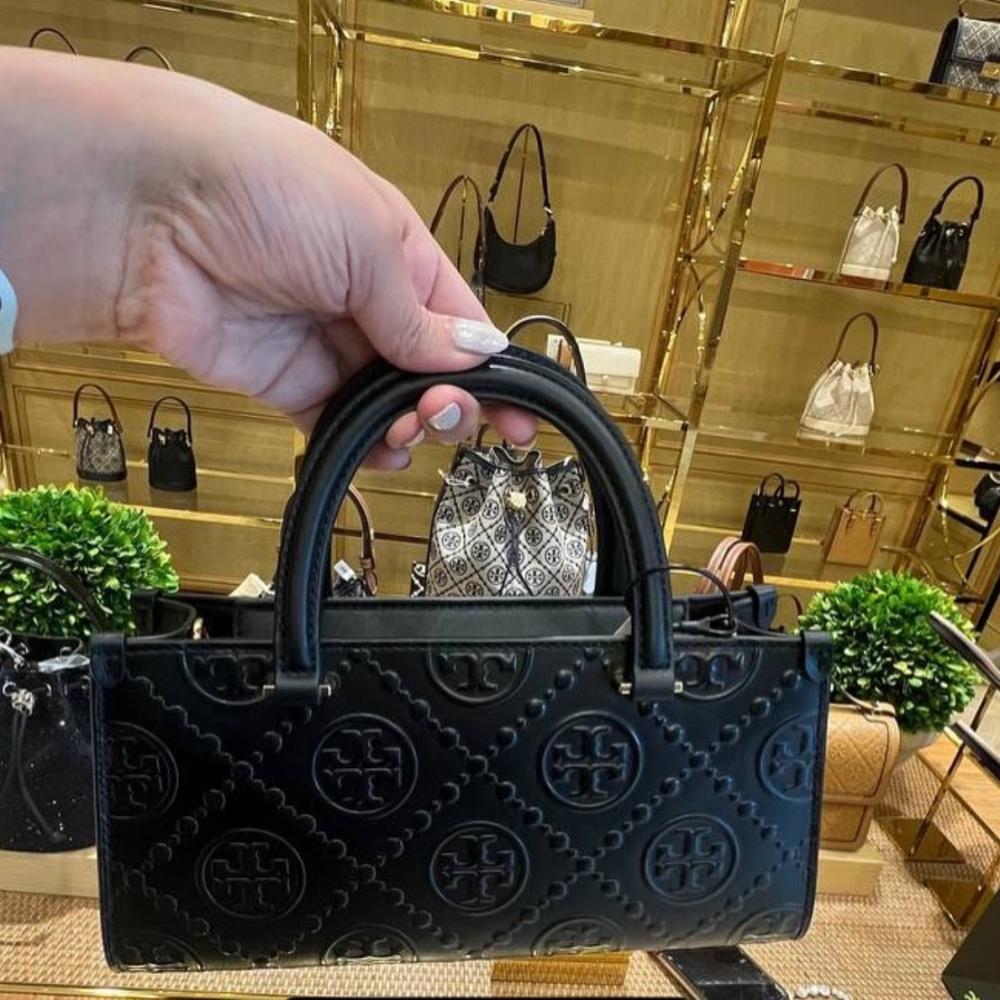 T MONOGRAM EMBOSSED SMALL EAST-WEST TOTE