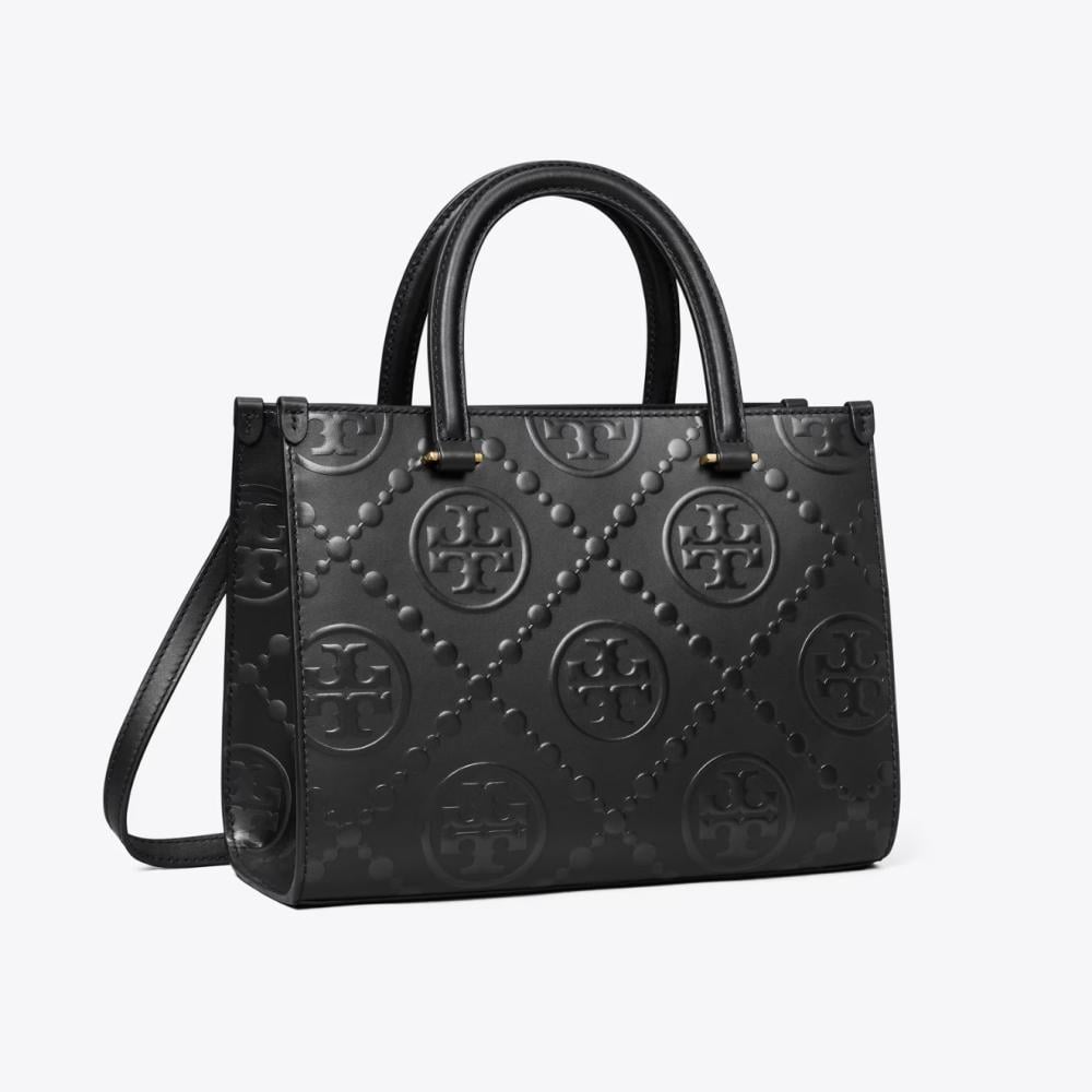T MONOGRAM TOP-HANDLE EMBOSSED TOTE