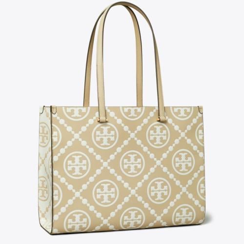 T MONOGRAM CONTRAST EMBOSSED TOTE
